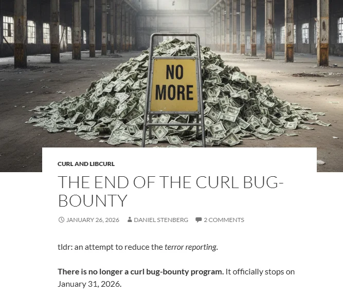 - Socket - curl Shuts Down Bug Bounty Program After Flood of AI Slop Reports