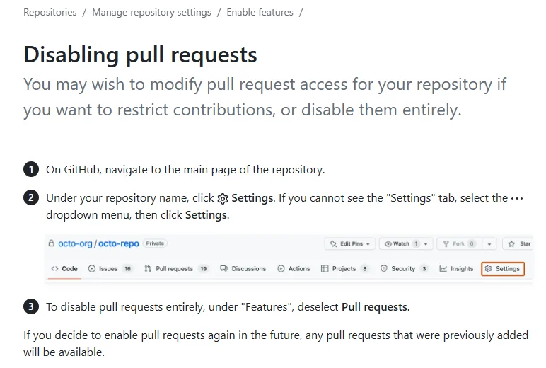 - Completely disabling pull requests (already shipped as an opt-in feature)