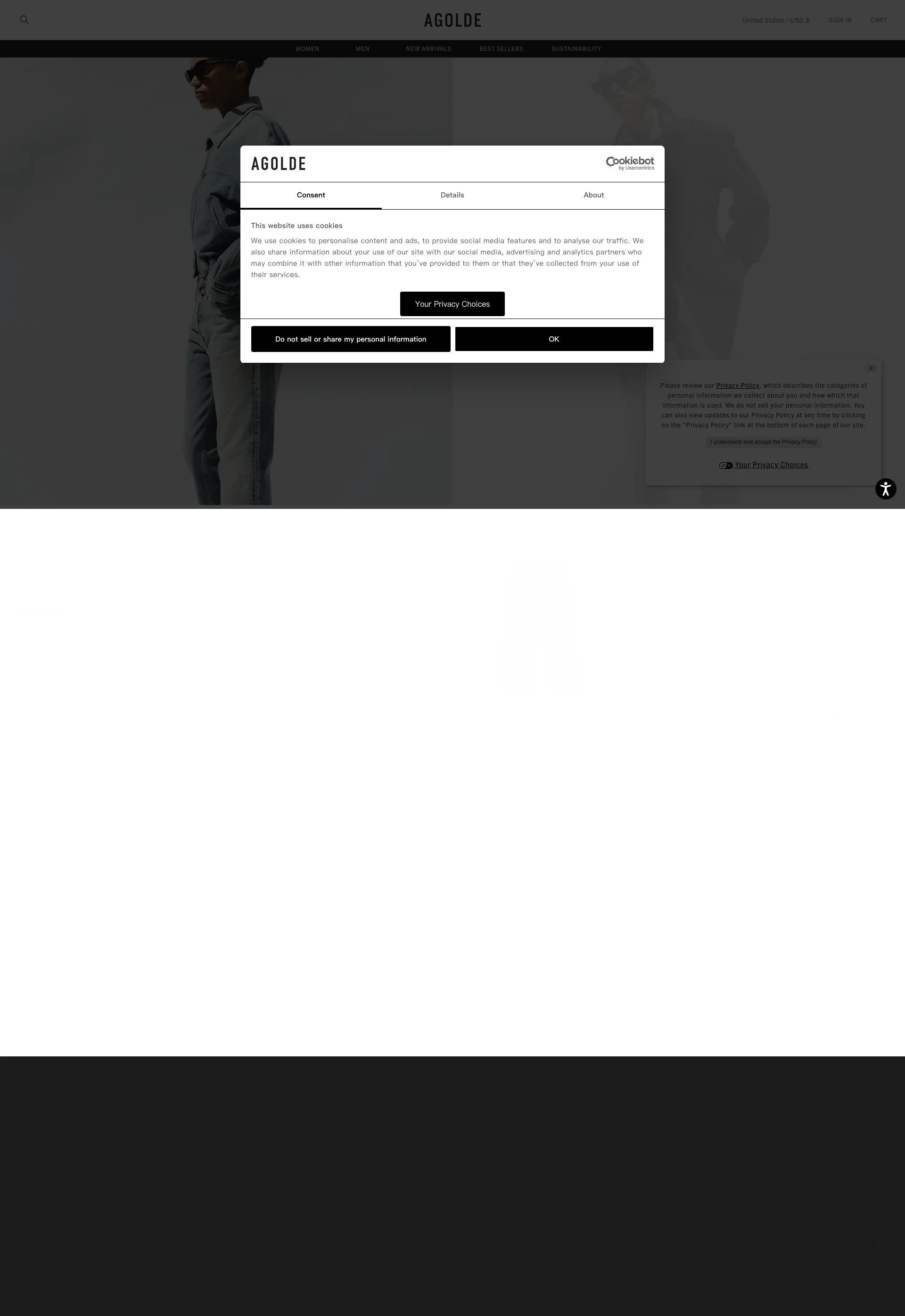 | AGOLDE | Large consent interface dominates hero view | compliance layer interrupts product discovery | lost first-click momentum |
