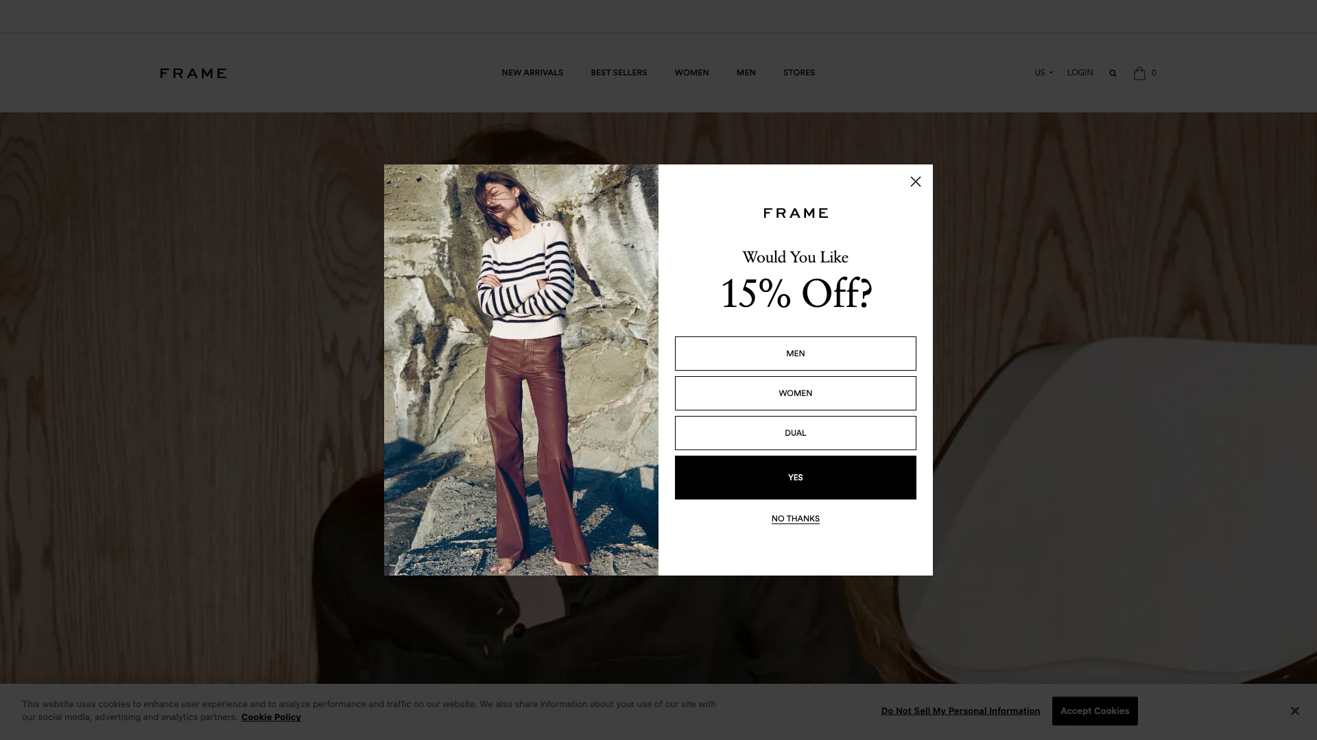 The modal asks the visitor whether they want 15% off, then routes them into audience choices before browsing. This is a familiar retention play, and in many environments it works. But during Black Friday, especially for premium denim, it can conflict with the real job-to-be-done.