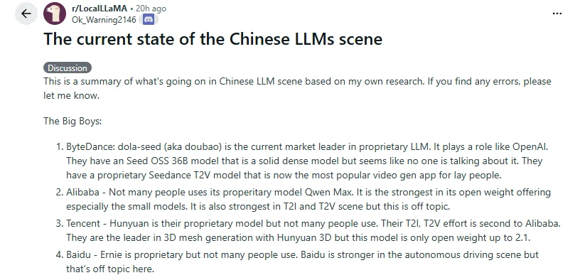 The Reddit post titled The current state of the Chinese LLMs scene did capture two important truths.
