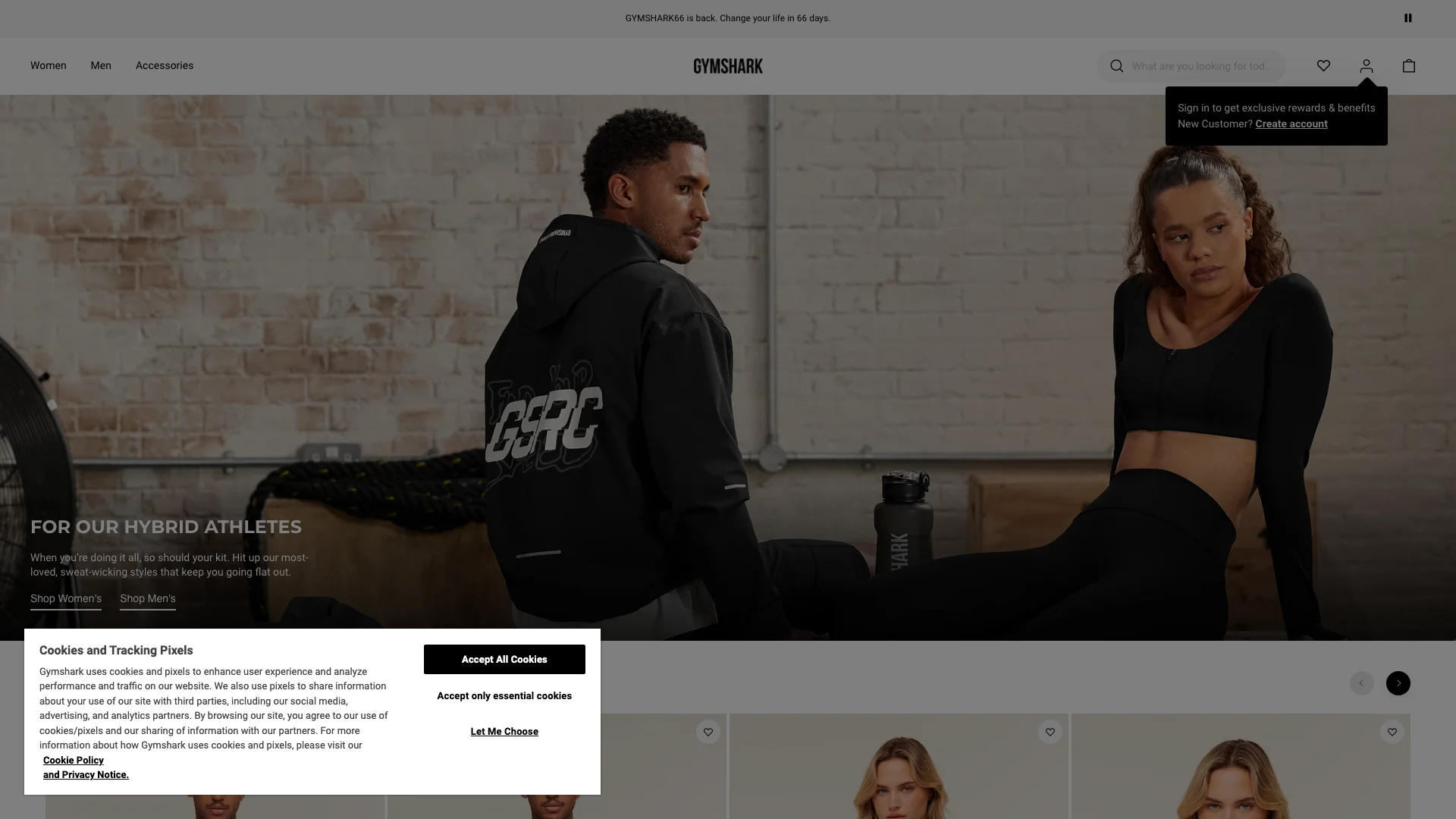 Gymshark’s homepage demonstrates a different version of the same problem.
