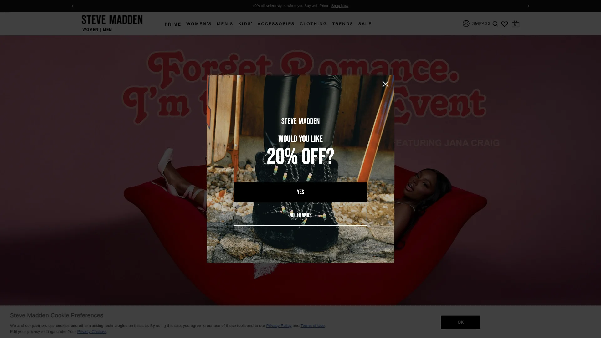 - an email or discount capture pop-up asking: Would you like 20% off?